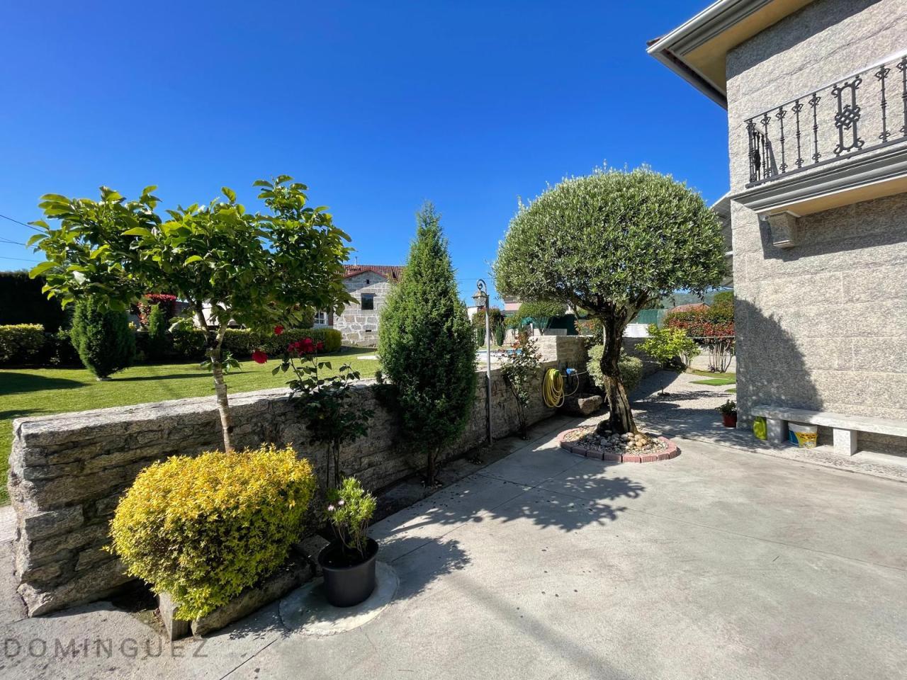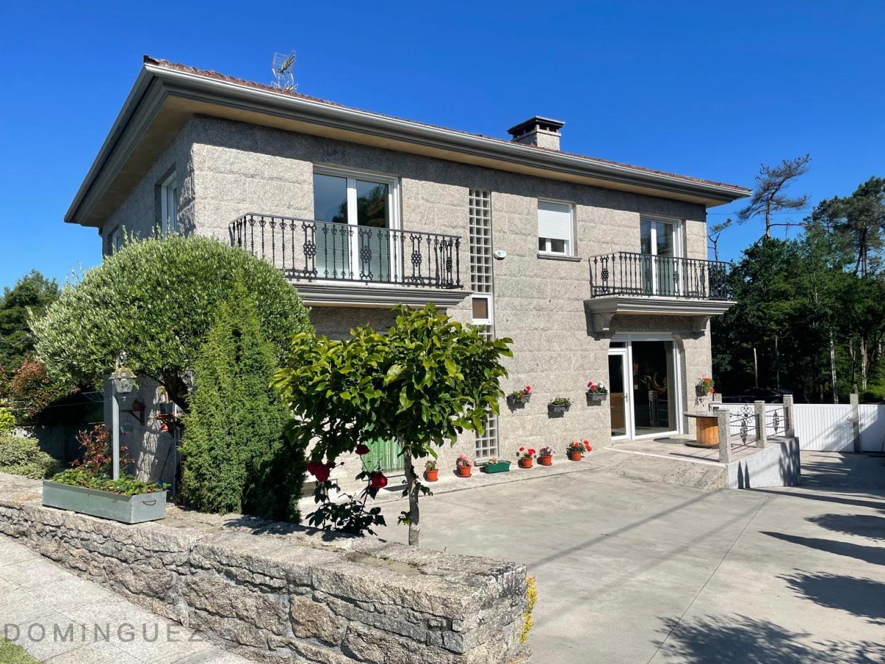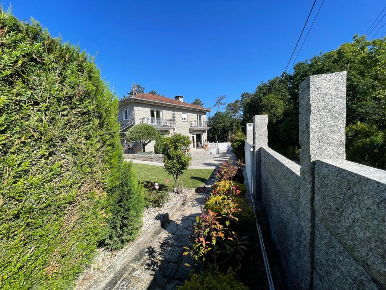 Esta propiedad, ubicada en la parroquia de Cristiñade, Ponteareas, cuenta con dos viviendas unidas con diferentes referencias catastrales y con acceso independiente. La casa principal, de 381 m², está construida con materiales de alta calidad y presenta muros de piedra que le otorgan un carácter rústico y acogedor. En la planta baja se encuentra un salón luminoso con chimenea que proporciona calefacción a través de radiadores, una cocina-comedor de 40 m² con electrodomésticos de última generación y un dormitorio principal en suite con baño privado. La planta superior alberga tres dormitorios adicionales, uno de los cuales está en suite, y un espacio adicional utilizado como despacho. Además, hay otro baño fuera de los dormitorios. El garaje, en la planta inferior, tiene acceso automático y capacidad para 4 coches. Además, la propiedad cuenta con una casa de piedra centenaria de 235 m² que actualmente se usa como almacén pero que tiene un gran potencial para restaurarse y convertirse en una vivienda independiente o un espacio adicional. La propiedad también dispone de un asador independiente en el jardín.