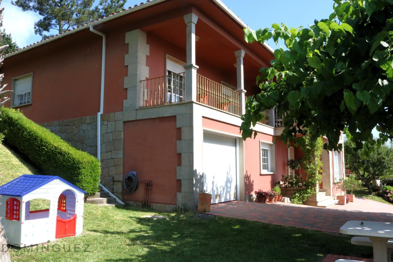 La primera vivienda consta de con 301m2 y dispone de un amplio salón, cocina, baño y una habitación ciega multifuncional en la planta baja y en la primera planta disfrutarás de un luminoso salón desde el cual se ve la ría, las cuatro habitaciones amplias con armarios empotrados, dos baños completos con bañera, uno de ellos en el dormitorio principal y una terraza extensa con vistas al jardín, tiene acceso desde el salón, una habitación y la habitación principal, desde la cual se puede ver el río Lérez atravesando la ciudad de Pontevedra. Tiene garaje con capacidad para un coche.
