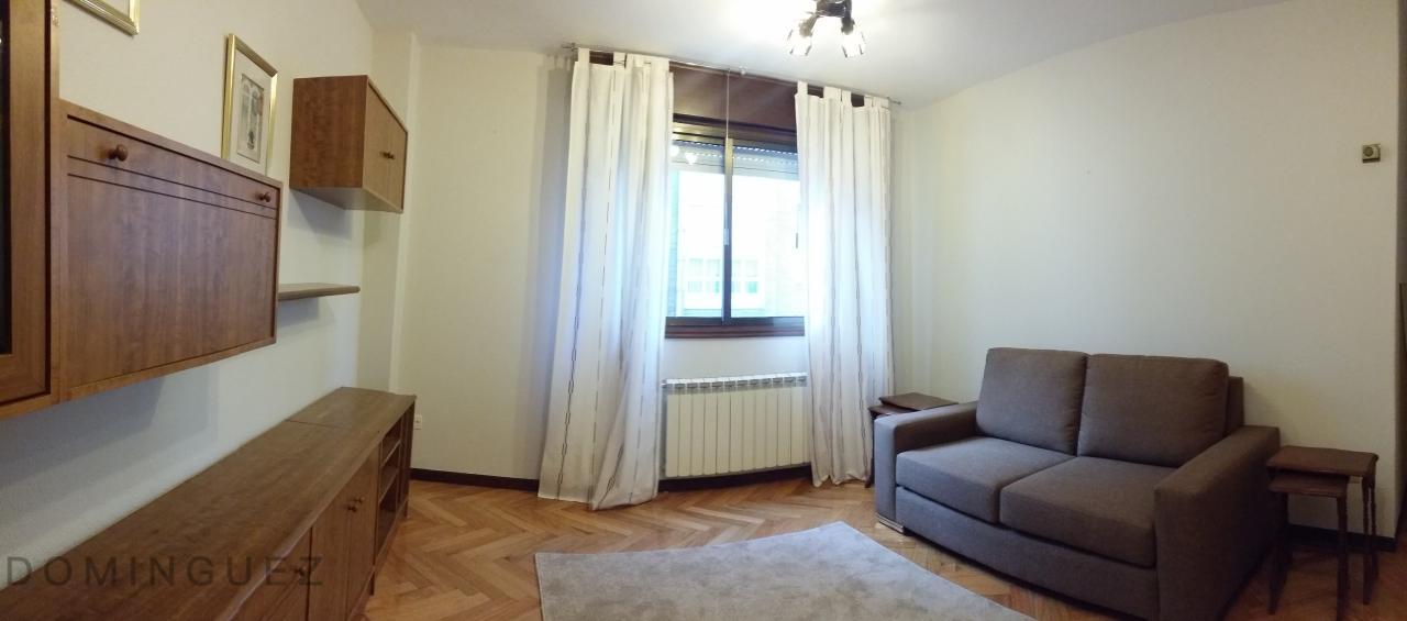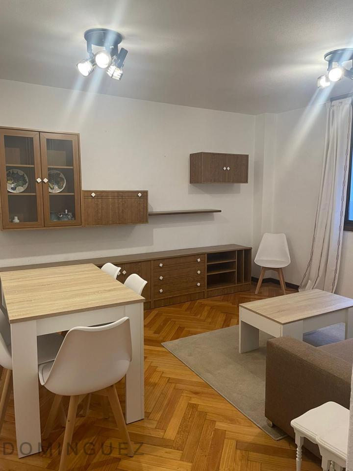 El salón es el núcleo de la vivienda, aportando luz y funcionalidad. La cocina se encuentra equipada con todos los electrodomésticos. El dormitorio principal cuenta con dos armarios, mientras que el otro dormitorio puede adaptarse como dormitorio auxiliar, vestidor o despacho. El piso se alquila amueblado. La vivienda es totalmente exterior a una zona silenciosa y tranquila pero muy luminosa.